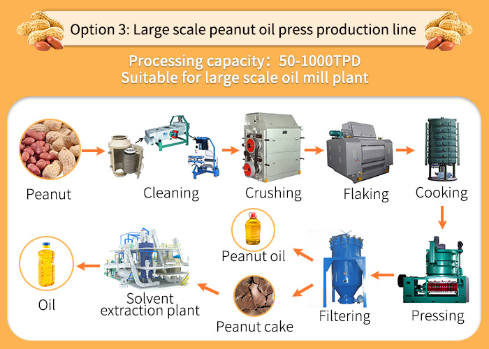 The processing of peanut oil can be divided into small, medium and large scale processing plants according to the processing capacity.